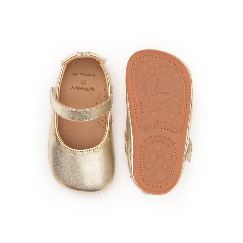 • Forro de couro que deixa o pezinho respirar.