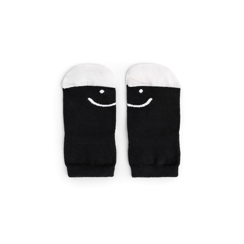 • Nossas meias tem pé direito e esquerdo. Para ter certeza de que calçou corretamente, forme o sorriso!