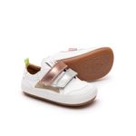 Landy é o tênis com duplo fecho para um calce fácil e elástico no calcanhar que abraça o pezinho, garantindo que o sapatinho não caia durante os primeiros passos.