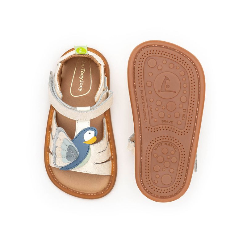 • Design lúdico – Upper com recortes delicados e aplique exclusivo de arara azul.