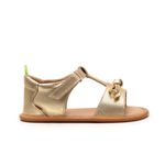 A sandália para bebês Whimsy tem lacinho delicado costurado na parte de cima que não desamarra. Ela tem fecho em T que se ajusta bem aos pés mais altos e gordinhos.